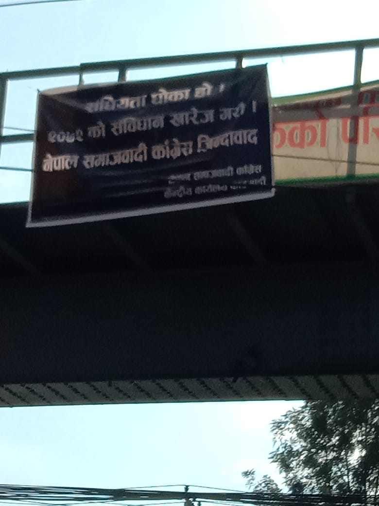 उनीहरुले कालो ब्यानरमा अधिनायकबाद सामन्तबाद–मुर्दावाद, २०७२ को संविधान धोका हो, नेपाल समाजवादी कांग्रेस जिन्दावादलगायतका नारा लेखेका थिए । पार्टी अध्यक्ष गोविन्द निरौलाले संविधान नेपाल र नेपालीको हितमा नभएकाले यसविरुद्ध आन्दोलन गर्नुपरेको जनाएका छन् ।