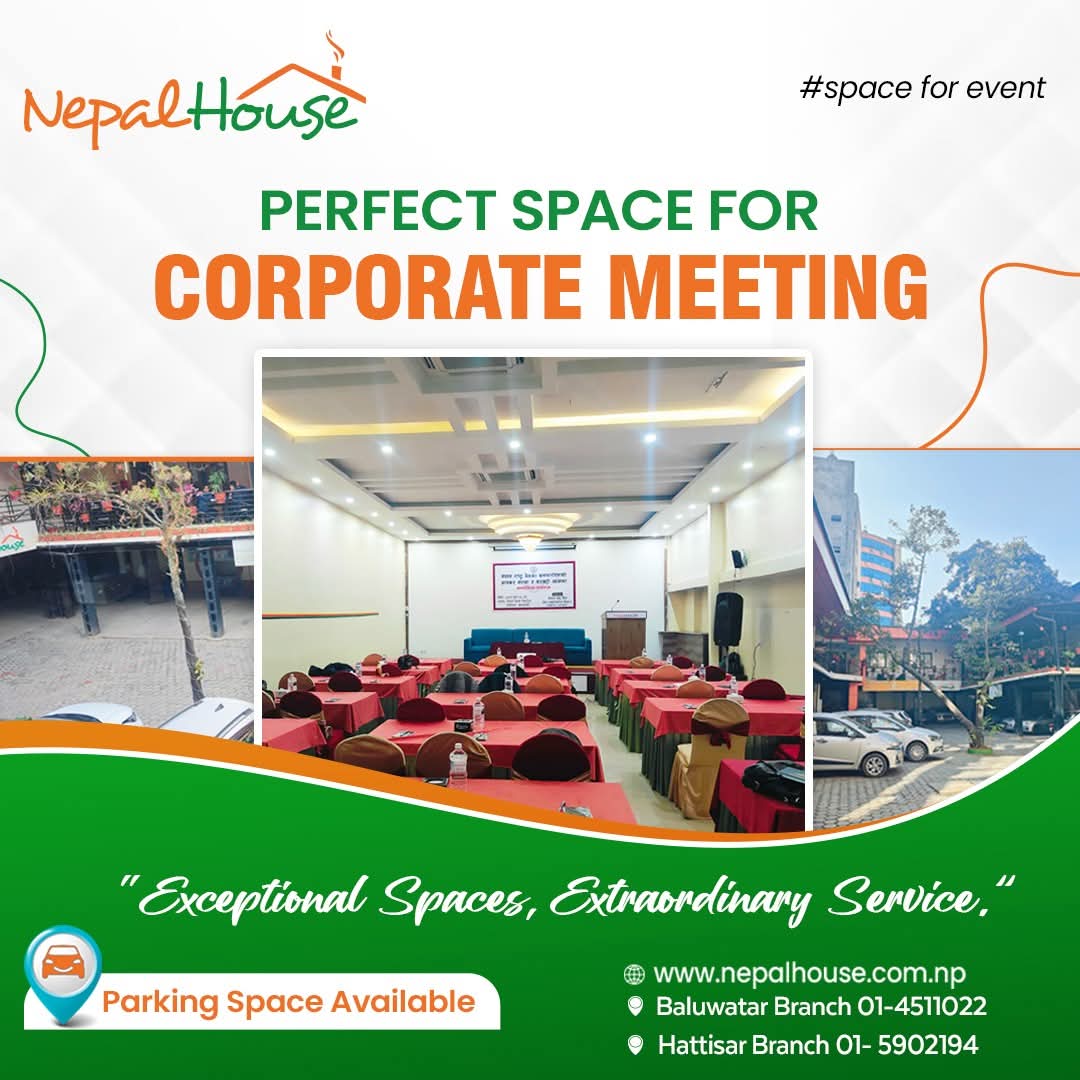 काठमाडौं, हात्तीसार – पारिवारिक जमघट, कर्पोरेट मिटिङ, विशेष समारोह तथा उत्सवहरूको लागि काठमाडौंको उत्कृष्ट गन्तव्यमध्ये एक हो नेपाल हाउस। शान्त वातावरण, भरपर्दो सेवा, र आधुनिक सुविधाहरूको संयोजनले नेपाल हाउसलाई छोटो समयमा नै लोकप्रिय बनाएको छ।